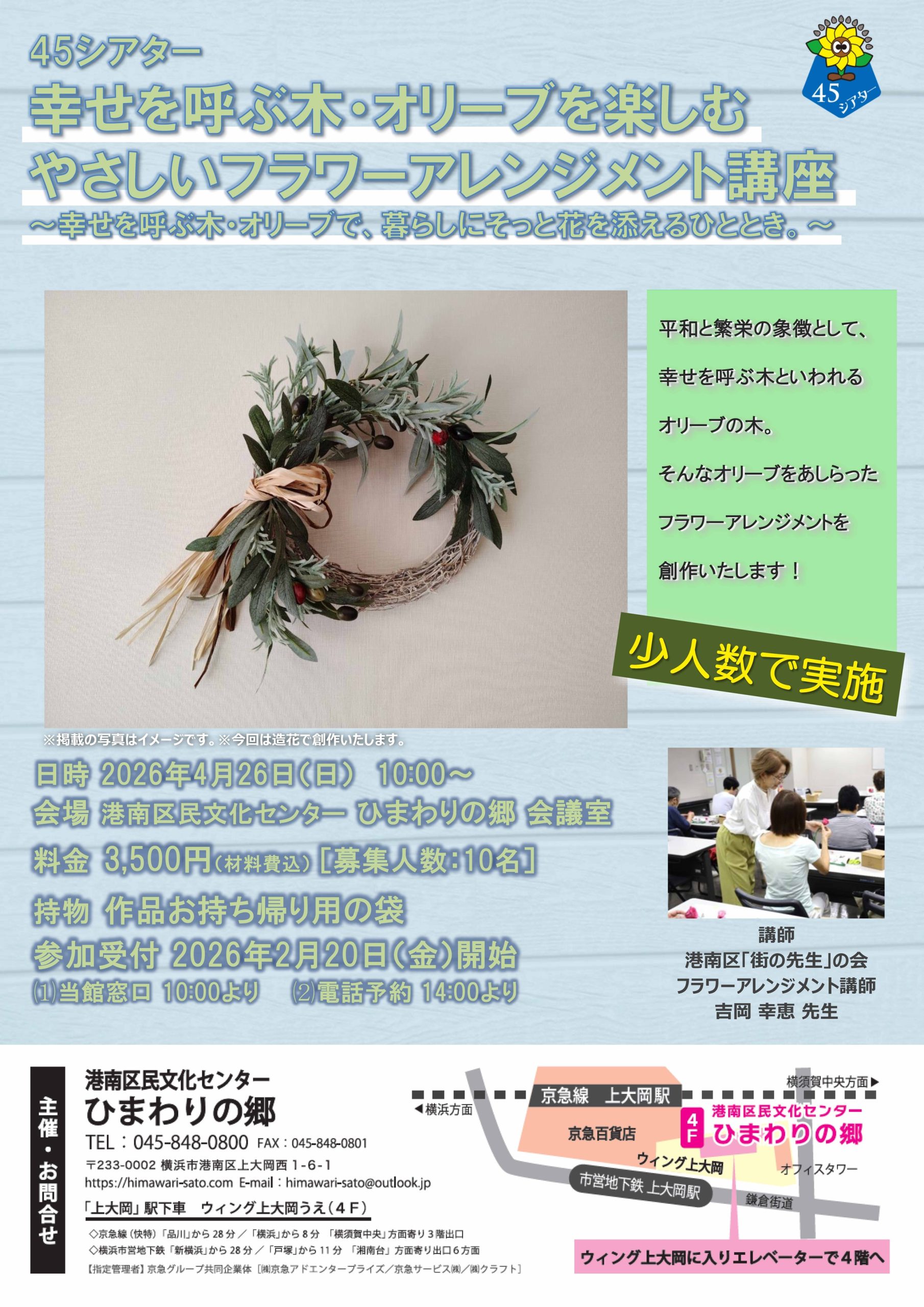 ~幸せを呼ぶ木・オリーブで、暮らしにそっと花を添えるひととき。~ 今回は造花での創作となります。 季節を問わず、お部屋に…