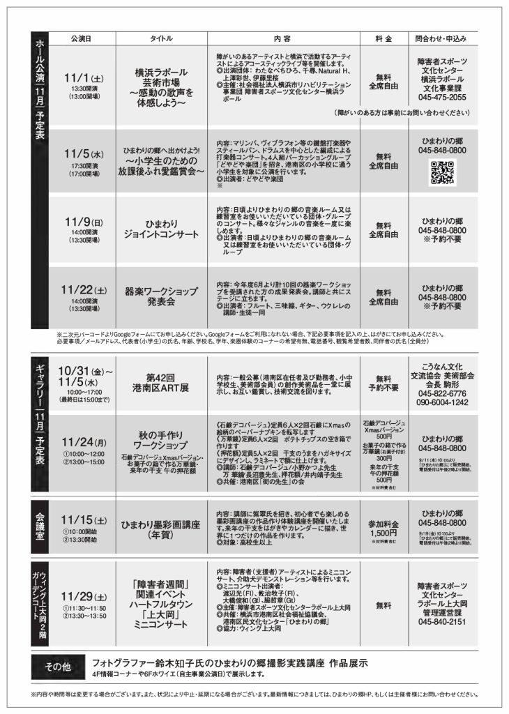 今年も11月中を文化月間とし、区民の方々、ご利用者様へ向けて様々な芸術文化を発信する予定です。