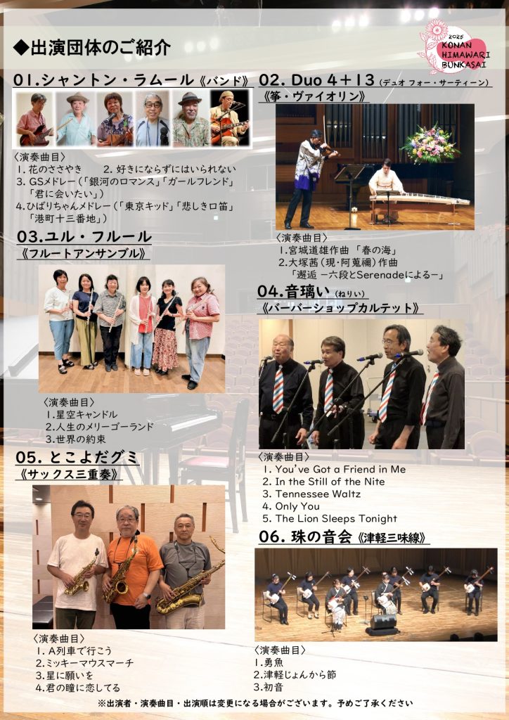 さまざまなジャンルの団体が一堂に出演いたします。ぜひお越しください!