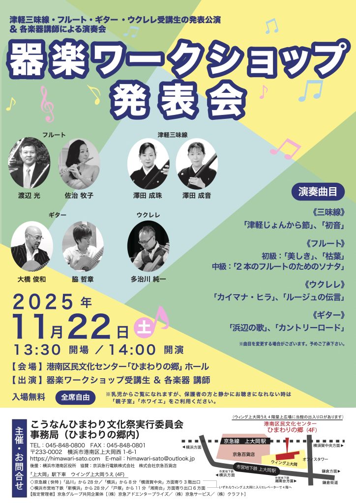 〈出演〉器楽WS フルート、三味線、ギター、ウクレレ 講師・生徒一同