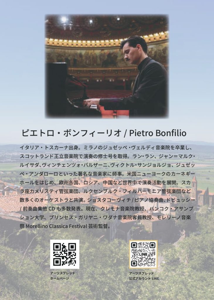 【2026/5/24】待望の来日!イタリアの貴公子   ピエトロ・ボンフィーリオ  ピアノ リサイタル