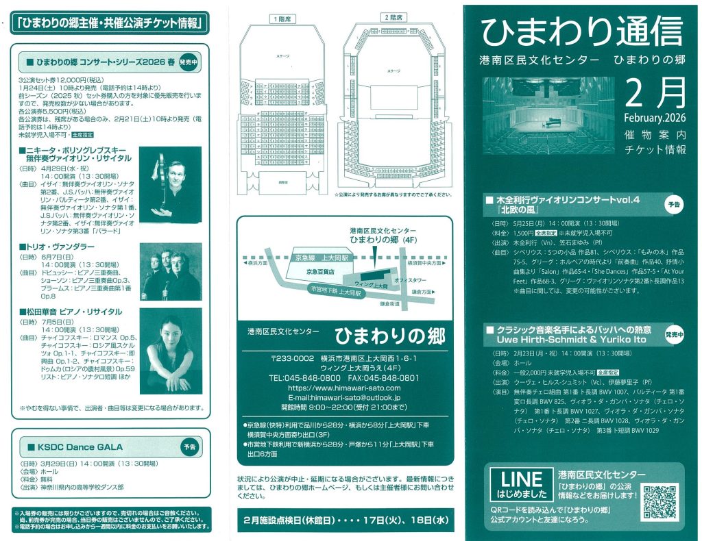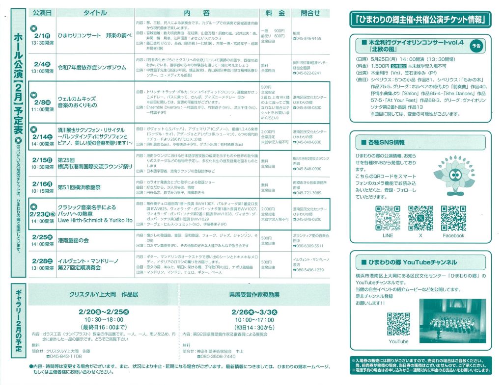 2026年2月月間予定表(ひまわり通信2月)