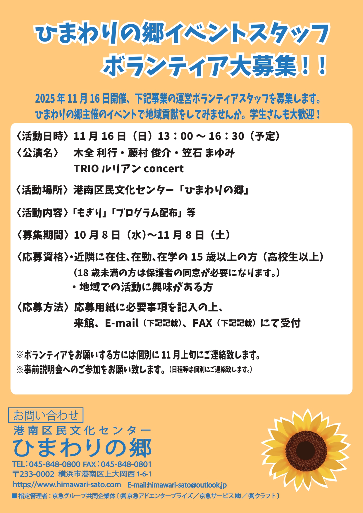 10月8日(水)~ひまわりの郷イベントスタッフボランティア募集!